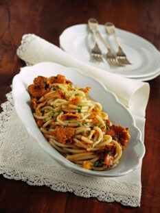 Pici ai finferli con briciole fritte