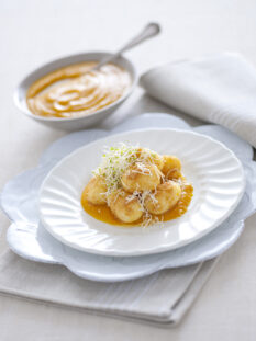 Gnocchi con cuore di montasio e crema di zucca