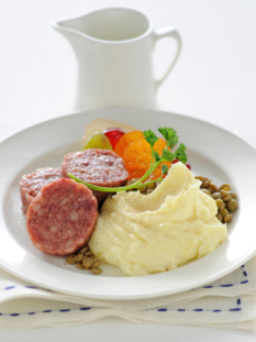 Zampone con purea e lenticchie