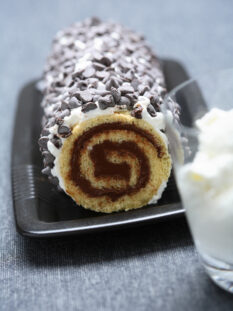 Rotolo di tiramisù ai lamponi con crema alla nocciola
