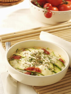 Parmigiana vegana di zucchine e peperoni con ragù di tofu