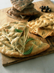 Focaccine al farro semi fiori di zucca salvia e rosmarino
