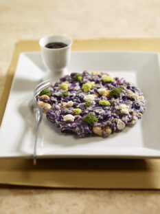 Risotto alla carbonara con cimette di broccolo