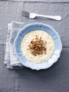Sformatini di pasta e crema di formaggio con funghi e topinambur