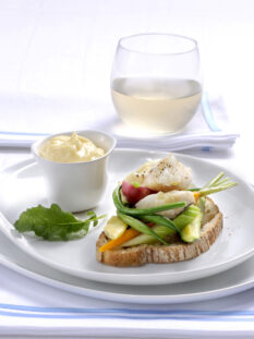Carpaccio di cavolfiore e patate con noci di capesante all’arancia