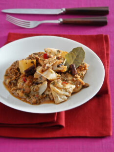 Rotolo di merluzzo, baccalà e cavolo con crema di ceci