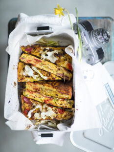 Tagliatelle con peperoni, ‘nduja e melanzane fritte