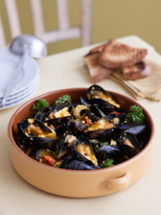 Moscardini con patate, fave e pistacchi