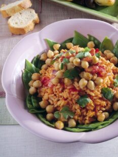 Riso fritto con olive, peperoncini dolci, quartirolo e cetriolini