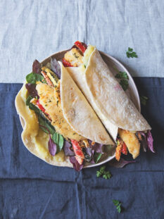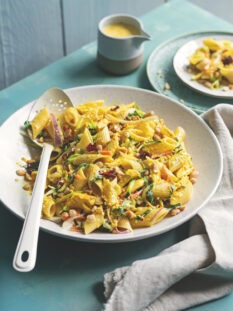 Gnocchetti sardi allo zafferano con tris di verdure e scampi