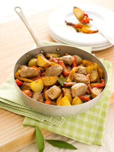Patate affumicate, falde di peperone arrostito e granola