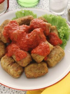 Polpettine cous cous integrale, cime di ripa, porri e ricotta
