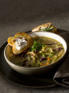 Zuppa di fagioli rossi e scarola con pesto aromatico
