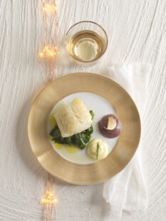Baccalà con aglio confit, salsa agra e salsa all’aglio