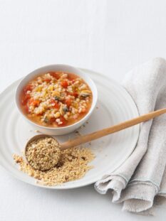 Gnocchetti sardi allo zafferano con tris di verdure e scampi