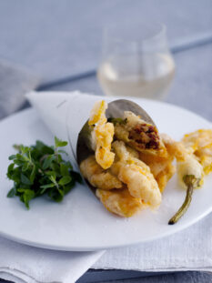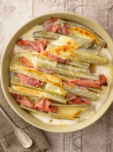 Arrosto di tacchino in crosta con fave, cicoria e scamorza
