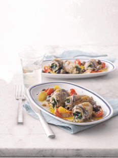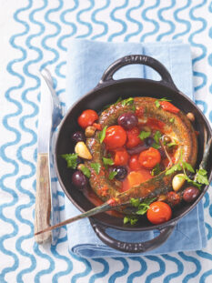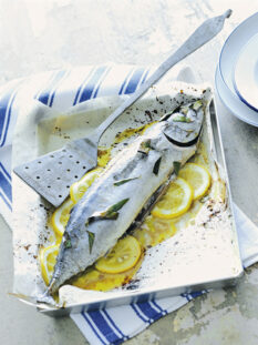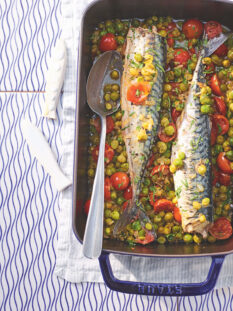 Arrosto di salmone e nasello all’arancia con cavolini alla melagrana