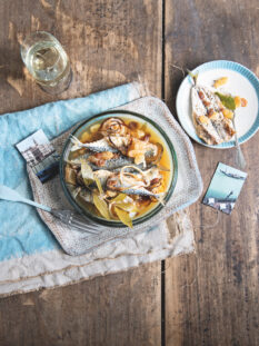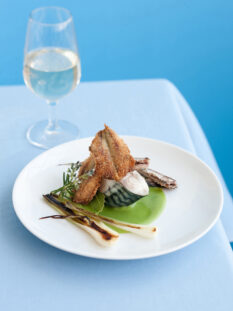 Sgombro fresco marinato con crostini allo yogurt e capperi