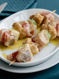 Spiedini di cotolettine con maionese allo yogurt e menta