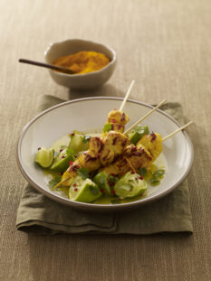 Spiedini di pollo con guacamole e insalata croccante al lime e menta