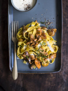 : Tagliatelle con salsa ai finferli castagne e taleggio