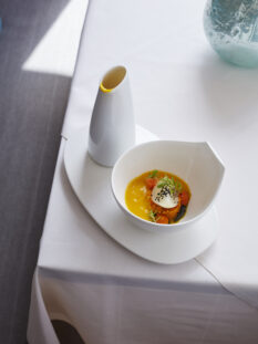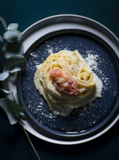 Tartare con Emmentaler cavolfiore e peperoni in agrodolce