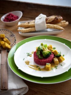 Parmigiana vegana di zucchine e peperoni con ragù di tofu