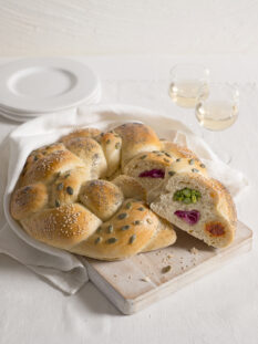Treccia fantasia con asparagi, formaggio e prosciutto