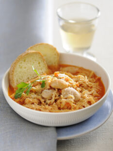 Pipe rigate con trippa e fagioli bianchi di Spagna