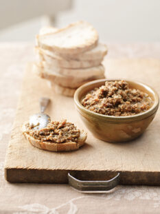 Monococco con menta, melanzane, cipolle caramellate e pinoli