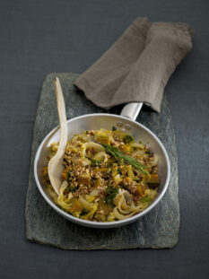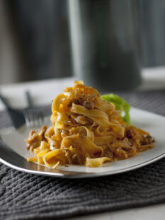 Le fettuccine di mais al ragù di brasato e verze