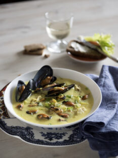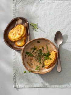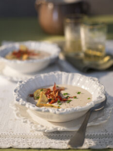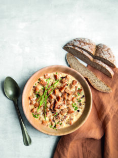 Zuppa fredda di melanzane e yogurt con i pomodorini