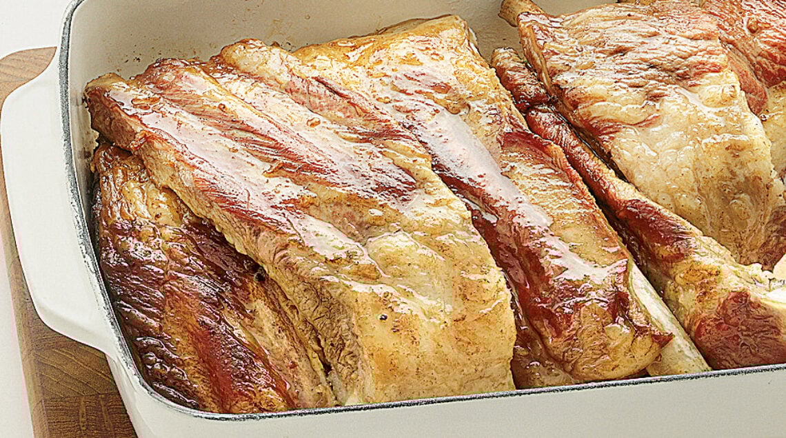 Mettete le puntine in una teglia non unta e passatele in forno a 200° per 10 minuti, per far sciogliere il grasso.