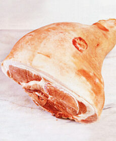 È uno dei tagli più pregiati e normalmente viene utilizzato per preparare il prosciutto crudo. Fresco, il cosciotto può essere cucinato arrosto: all’inglese, con la cotenna come i cosciottini alle spezie della foto sopra, prima fatti marinare in salomoia e poi infornati, o alla francese, senza. E proposito di cotenna, proprio sotto a essa troviamo la fascia grassa, ovvero il lardo.