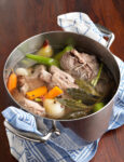 Più semplice ancora è la preparazione del bollito misto classico, con la punta di petto unica protagonista, fatta bollire con un mazzetto aromatico composto da carota, porro, sedano, alloro e prezzemolo. Se preferite spaziare tra carni e odori, puntate sul bollito misto profumato della foto sopra, dove al biancostato e al cappello del prete sono accostati il cotechino e la lingua di vitello, profumando il tutto, tra gli altri, con la cannella, il ginepro e la scorza di limone.
