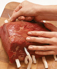 Nel primo caso, trattandosi di tagli poco grassi è consigliabile lardellarli, ossia inserire nella carne cruda delle listarelle di lardo utilizzando l’apposito utensile. Sciogliendosi in fase di cottura, tali striscioline renderanno la carne più morbida e tenera donandole anche del sapore in più.