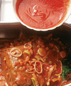 Riprende la tradizione e la impreziosisce con un raffinato intingolo il brasato di manzo cotto al vino rosso con salsa al cacao, mentre il brasato di manzo allo zafferano della foto sopra rinuncia nuovamente al vino a favore del brodo arricchito dalla rossa spezia. E, a fine cottura, accoglie una manciata di cranberry secchi ammollati. Ben più classico e legato alla scuola lombarda è il brasato al Valtellina Docg della foto sotto, servito con la polenta taragna, mentre il brasato al Gutturnio punta sulle spezie e sulla cottura della carne in forno.