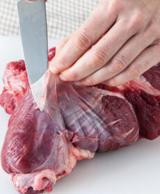 Per liberarlo della pelle e del tessuto connettivo che lo rivestono si incidono le parti da scartare con uno scortichino, poi si asportano lavorando con la lama del coltello di piatto.