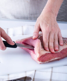 Bastano pochi accorgimenti per ottenere ottimi risultati: sono infatti la base ideale per arrosti arrotolati e farciti (nella foto l’incisione a “tasca” di un pezzo di pancia prima della farcitura).