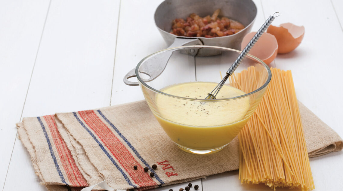 Se non amate gli imprevisti e temete la famigerata carbonara strapazzata, potete ricorrere a un piccolo espediente. Poco ortodosso ma di sicuro successo. Consiste nell’amalgamare tuorli, formaggio e pepe in una ciotola a bagnomaria. Mescolando gli ingredienti a temperatura moderata, consentirete loro di formare una cremina liscia e omogenea, cuocendole leggermente. Poi, potrete procedere con la mantecatura, unendo la salsa alla pasta appena scolata assieme a un mestolino dell’acqua di cottura e, solo all’ultimo, aggiungere il guanciale rosolato e il suo fondo.