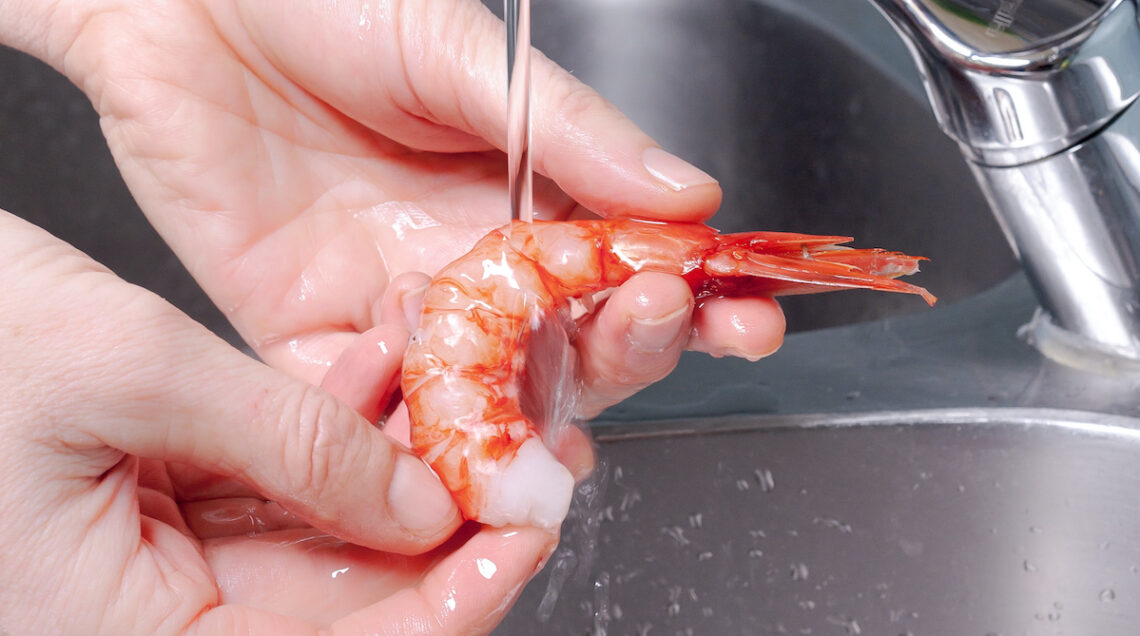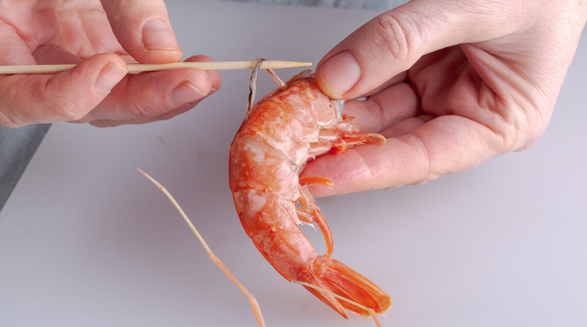 Passate poi a togliere i gusci, delicatamente e senza rovinare la polpa. Con l'aiuto di uno stecchino, sollevate e sfilate il filetto nero. Passateli quindi velocemente sotto il getto dell'acqua fredda corrente e infine asciugateli tamponando con carta da cucina.