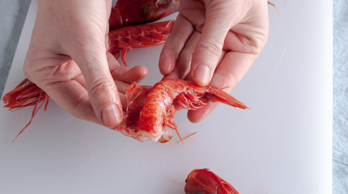Per la cottura in guazzetto, staccate le teste, togliete il filetto e lasciate i carapaci che daranno sapore al sugo. Se invece la ricetta prevede che la polpa sia avvolta da salumi, staccate i carapaci e togliete il filetto nero, lasciando teste e codine.