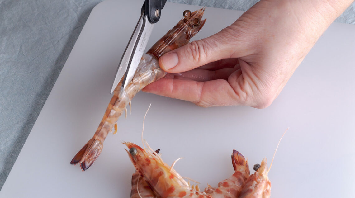 Se la ricetta lo richiede, potrete sia lasciare i gamberi interi, sia privarli solo parzialmente del carapace. Per esempio, se li dovete bollire o cuocere alla griglia, incideteli solo sul dorso con le forbici da cucina e togliete il filetto nero. Teste e guscio proteggeranno in cottura la delicatezza delle carni.