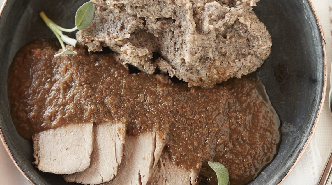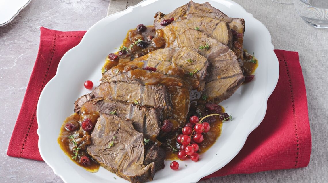Gustoso secondo piatto a base di carne resa tenerissima dalla lunga cottura in un recipiente chiuso, il brasato di manzo è un grande classico della cucina della festa del Nord Italia. In particolare del Piemonte, dove il brasato al Barolo è una vera istituzione. Cotto in origine sulle braci, che venivano poste anche sopra il suo stesso coperchio, pare debba il suo nome proprio al termine “brasa”, che significa appunto brace. Accanto all’uso di una casseruola coperta, tra le sue caratteristiche distintive troviamo anche l’impiego di abbondante liquido, generalmente vino, che consente alla carne di cuocere in parte per immersione e in parte a vapore, assorbendone l’aroma. A fine cottura la polpa del brasato si presenta scura e quasi caramellata.