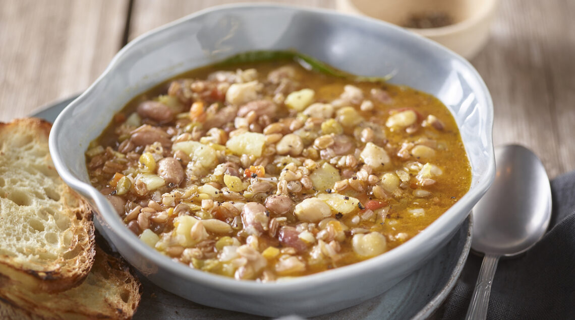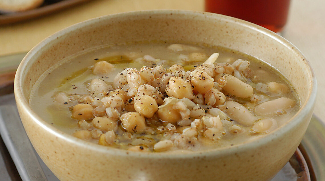 Altra zuppa tipica è la crapiata (nella foto), piatto tipico di Matera preparato a sua volta abbinando legumi, cereali, patate, pomodori e aromi dell’orto. In Toscana non poteva poi mancare la minestra garfagnina, preparata con il farro Igp della Garfagna abbinato ai fagioli borlotti, così come preparazioni profumate come il minestrone al basilico, con verdure e legumi freschi. Dal tocco più rustico dato dalla presenza del prosciutto è questa zuppetta, mentre chi ama le basi morbide apprezzerà la crema estiva ai borlotti, a sua volta da gustare appena tiepida.