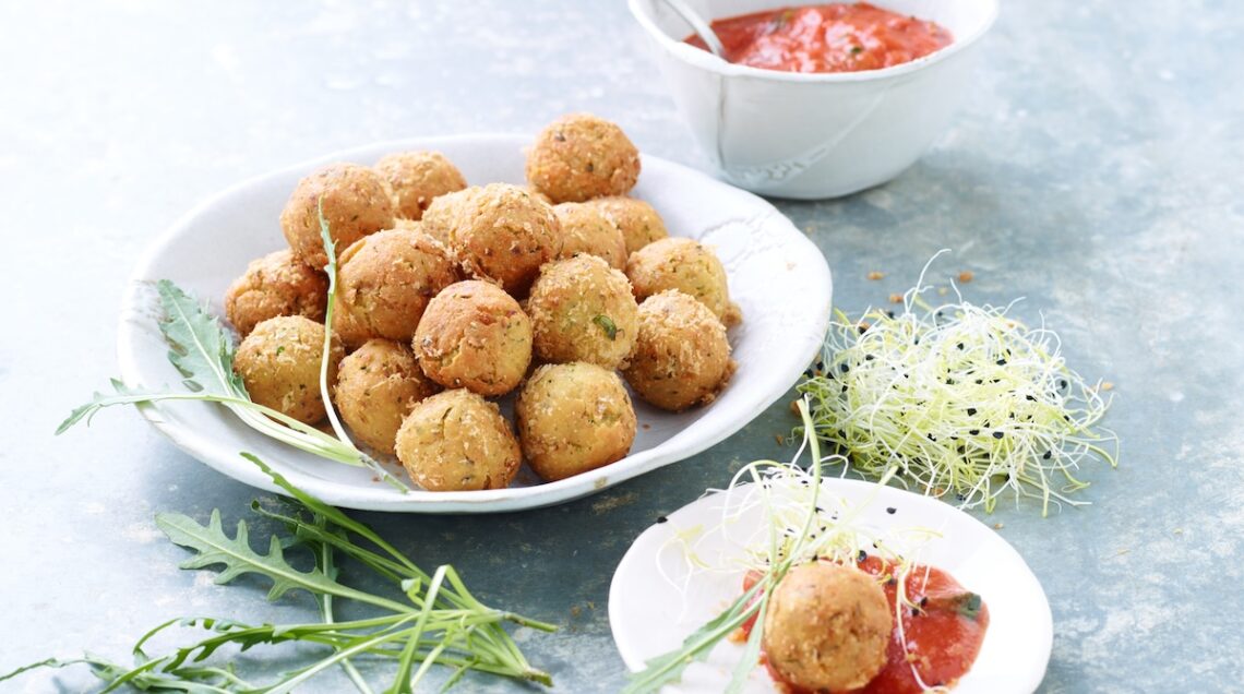 Per preparare queste polpettine, frullate 300 g di tempeh con mezza cipolla tritata, 2 cucchiai di lievito alimentare in scaglie e un cucchiaio di semi di lino mescolati con 2 cucchiai di acqua. Unitevi poi un trito di prezzemolo e peperoncino, salate e formate delle palline, che passerete nel pane grattugiato prima di friggerle nell’olio di arachidi caldo.