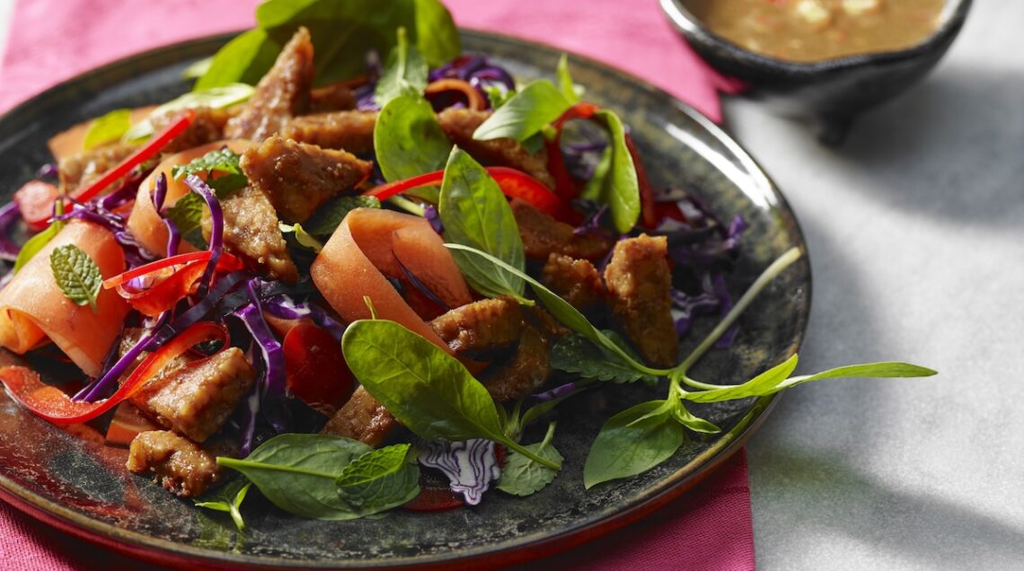 Considerato il cugino meno famoso del tofu, il tempeh è detto anche carne di soia per l’alta quantità di proteine che contiene. Originario dell’Indonesia, è derivato quanto il suo più noto parente cinese dai semi di soia gialla (Glycine soia), ma rispetto a questo ha un sapore più marcato, dovuto alla fermentazione che gli dà origine. Nel suo gusto si distinguono note di funghi e di noci, ma anche un fondo amarognolo, che viene eliminato però con la cottura, altamente consigliata proprio a questo fine.