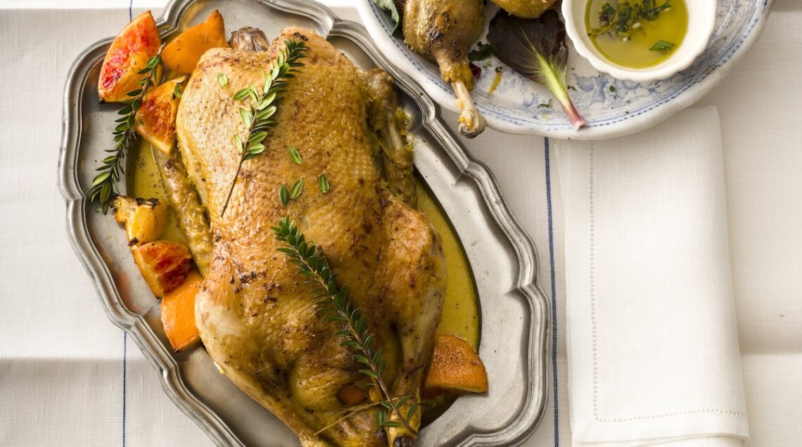Dalle origini antiche e pare già apprezzato nel mondo arabo prima di conquistare i palati europei, l’abbinamento tra l’anatra e gli agrumi conosce innumerevoli espressioni in cucina. Alla ricetta dell’anatra all’arancia della tradizione, dunque, si accostano preparazioni relativamente più semplici come per esempio l’anatra marinata all’arancia della foto in alto. Massaggiata esternamente con olio e scorza grattugiata di arancia e farcita con l’agrume a spicchi, l’anatra riposa in frigo per almeno una notte per poi essere cotta in forno con un trito di ortaggi, bagnata a metà del tempo con una riduzione di succo di agrumi.
