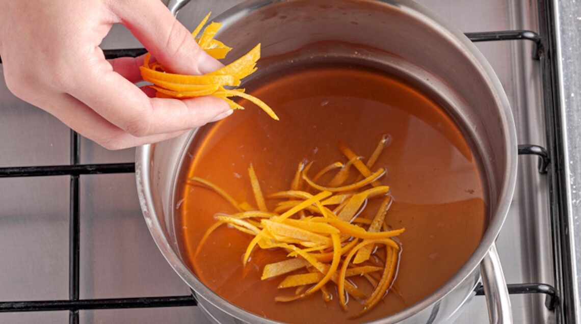 Così come cambiano gli ingredienti in cottura, così varia anche la salsa all’arancia che accompagna l’anatra. Per una versione più complessa del piatto, dopo avere cotto il volatile con scalogni o cipolla, sedano, carote e aromi prelevatelo, sgocciolatelo e avvolgetelo con carta di alluminio. Fate raffreddare il sugo di cottura in frigo, poi eliminate gran parte del grasso che si sarà rappreso e mettete il tutto in una casseruola.