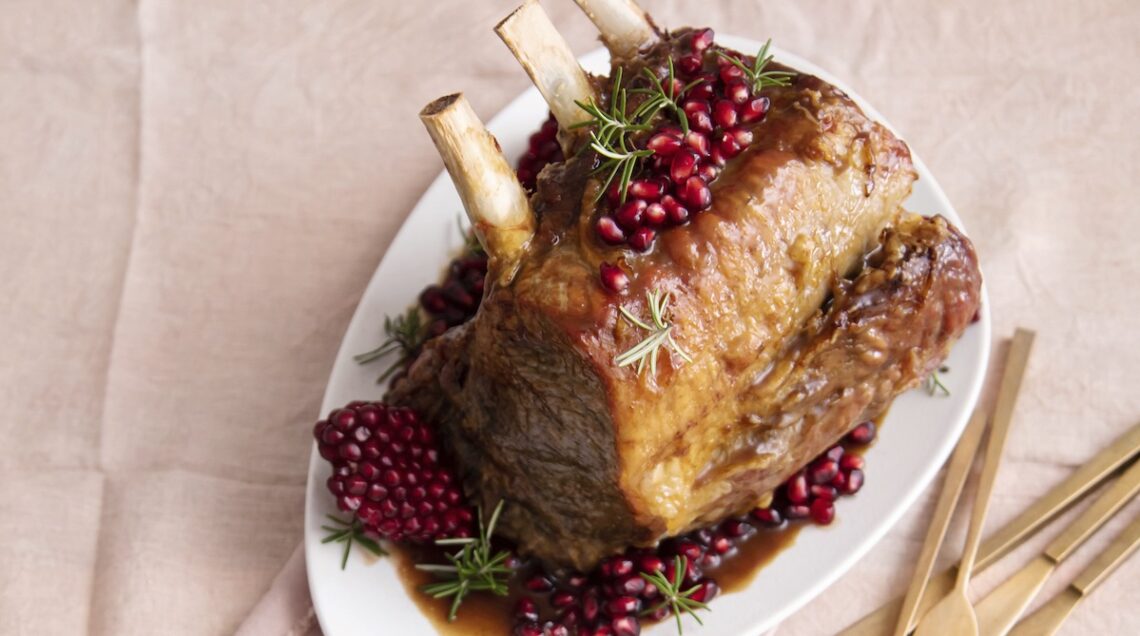 Si parla sempre di carne bovina e di grandi classici passando al vitello. L'arrosto di vitello con patate sceglie un taglio molto morbido come lo scamone, perfetto per questo tipo di preparazione, rinnovando la tradizione con l’impiego dello spumante al posto del classico vino bianco fermo. Passando a una preparazione più spettacolare troviamo poi il carré arrosto con melagrana della foto sopra: con tutti gli ossi bene in vista, è cotto al forno e impreziosito da una salsina preparata con il succo estratto dal frutto sgranato unito a miele e cannella.